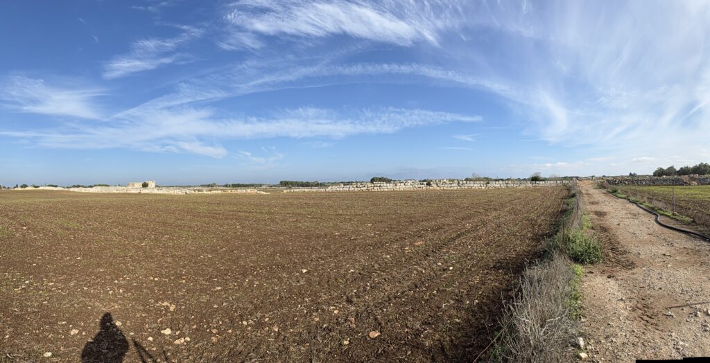 sempre per strade di campagna, ci siamo addentrati nel territorio sterrato per arrivare pian piano sulla provinciale SP157 ma non prima di passare su un Muro messapico antico. Nemmeno questo muro è segnalato. Ci siamo passati sopra senza saperlo.
